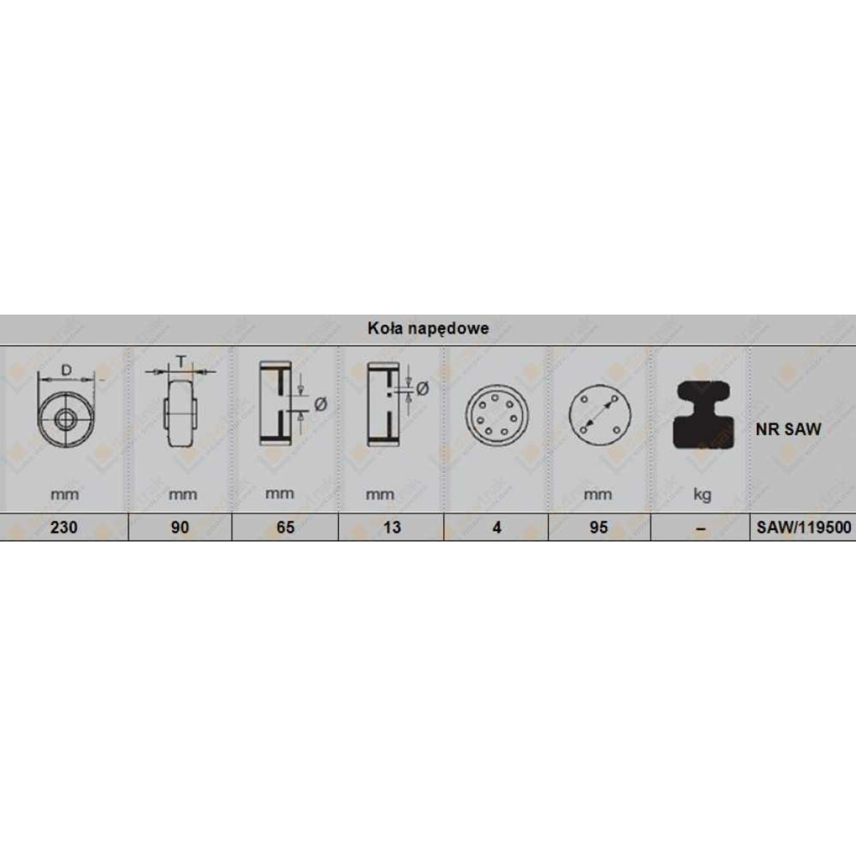 Koło napędoweSAW/119499 POLIURETAN 230X75X184 POLIURETAN 230X75X184 LINDE 0009903812 Dodaj do zapytania Dodaj do zamówienia