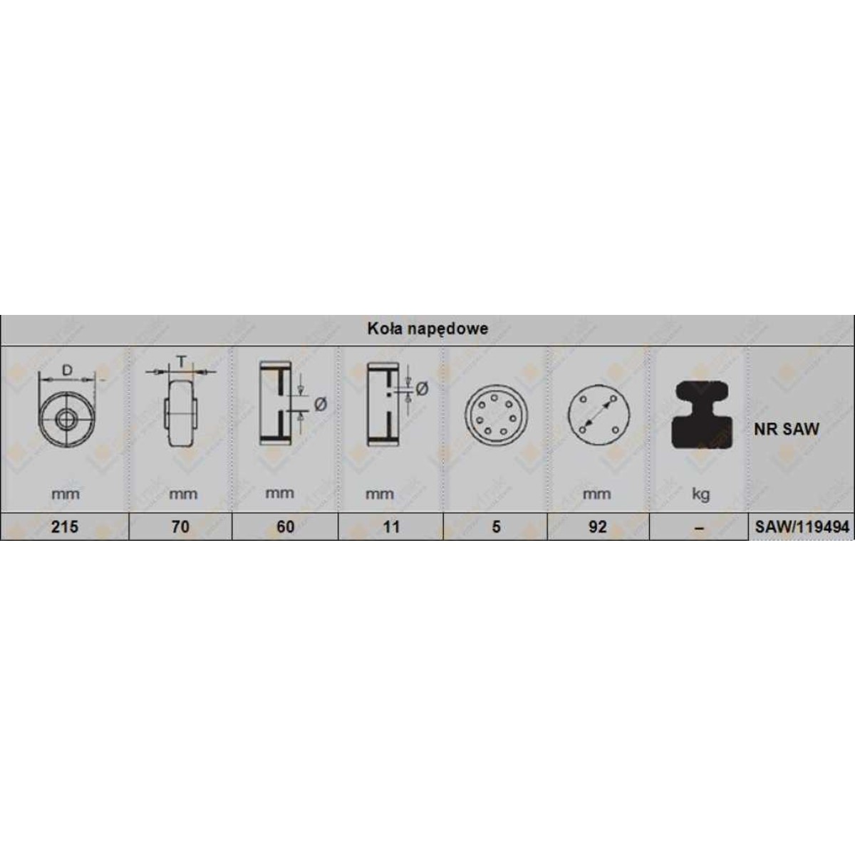 Koło napędoweSAW/120234 Wymiary: 250x75x200 Wymiary: 250x75x200 VULKOLLAN 7577494 Dodaj do zapytania Dodaj do zamówienia
